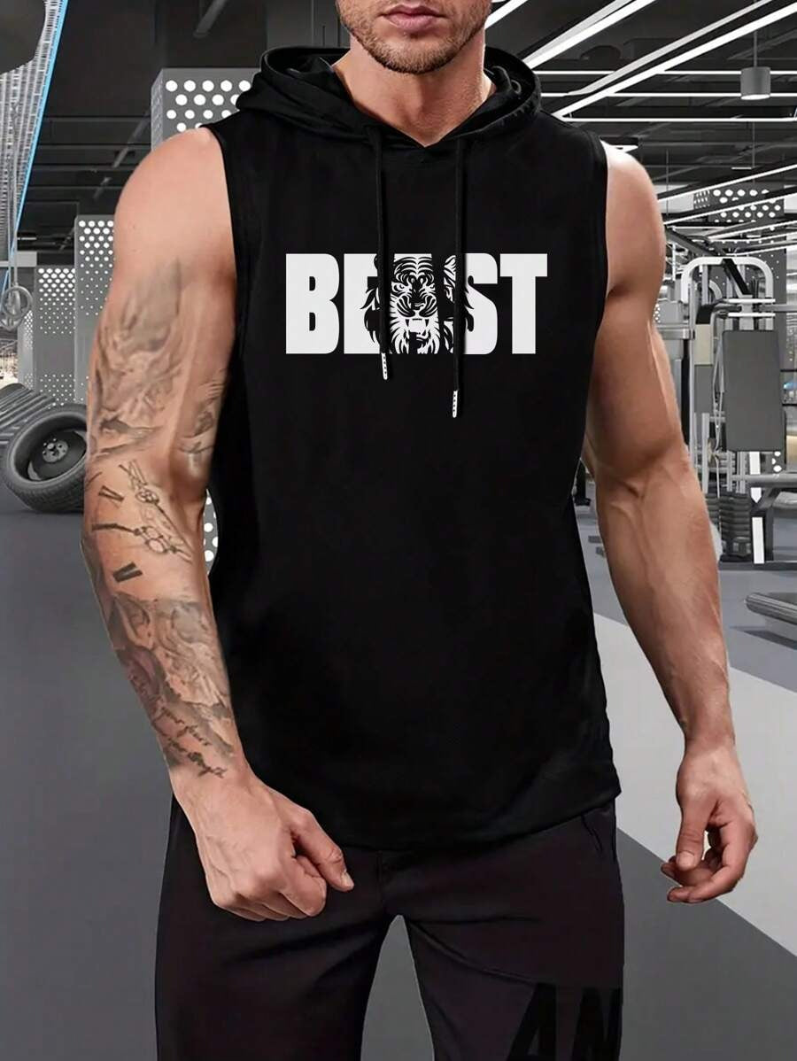 Franela sin Mangas de Hombre color Azul /Secado Rapido, Estampado Blanco