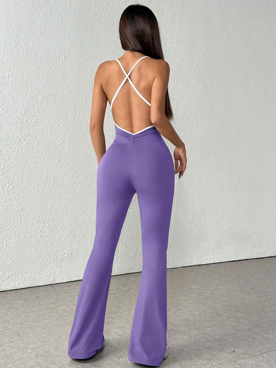 Body Largo de Mujer color Lila /Bota Ancha, Espalda Cruzada