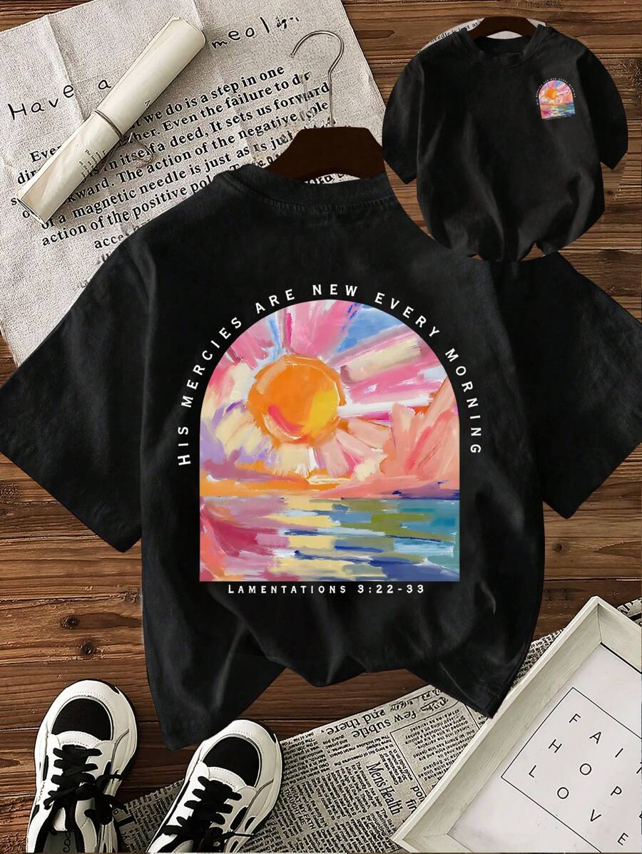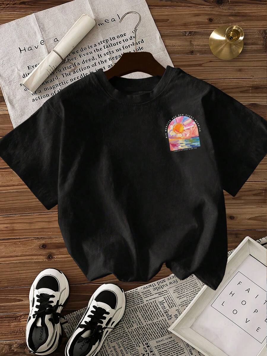 Franela Manga Corta de Mujer color Negro /Doble estampado